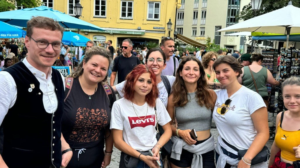 Oggi Veronica ha detto: è stata una bellissima giornata, abbiamo camminato tanto e visto cose belle e caratteristiche di Monaco. È stato molto divertente incontrare e parlare con persone del posto. Mi sono messa in gioco, mostrando curiosità per ciò che volevano trasmettere. Nonostante alcuni rifiuti di confronto, mi ha fatto piacere essere riuscita ad ascoltare alcune delle persone incontrate.