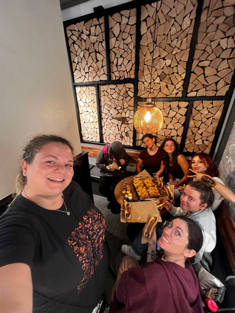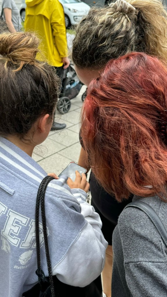 Dopo questo momento di scambio e coccole pelose, Silvia ci ha guidate per la città, portandoci in una zona di Monaco molto vivace dove abbiamo pranzato a base di würstel e patatine fritte in un piccolo locale. Passeggiando ci siamo ritrovate davanti ad un grandissimo pub tedesco, dove regnava la confusione, la musica, ed il suono dei mega boccali di birra sbattuti sul tavolo, come la vera tradizione tedesca vuole!
